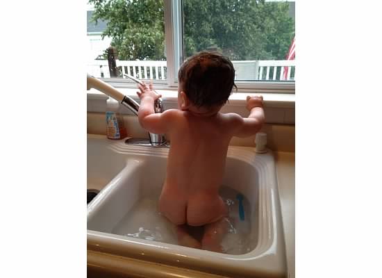 Some of Henry's favorite things right now are: feeding himself, drinking on his own out of his sippy cup (this little boy can chug some water!), pointing, dancing, watching the "I'm Elmo and I Know It" video, swinging, climbing stairs, wrestling with daddy, talking like a monster with daddy (they growl back and forth), and playing with Big Ted at grandma and grandpa's house.